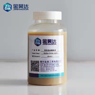 JH-611 نوعی از امولسیون اکریلیک استایرن کاتیونی م effectiveثر است که توسط استایرن ، اکریلات و انواع پلیمرها از طریق فرآیند تولید ویژه پلیمریزه می شود. می توان آن را به طور م withثر با نشاسته مطابقت داد و اجازه داد لایه نشاسته در قدرت اتصال متقابل و آبگریزی بهتر عمل کند. دوز کمتر ، کم هزینه تر ، اثر اندازه گیری سطح بهتر و راحتی از ویژگی های اصلی JH-611 است. به طور گسترده ای در تولید کاغذ راه راه ، مقوا ، کاغذ تخته سفید ، کاغذ صنایع دستی و غیره استفاده می شود
